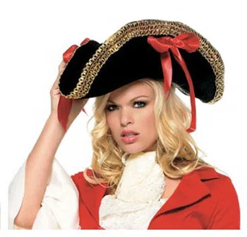 Black Pirate HatThis sexy Ladies Pirate Hat complements any of sexy pirate costumes perfectly. It has 1 ½” wide gold trim around the edges and two big red satin bows on either side. The inside is about 25″ in circumference. Don’t miss out on this great accessory!