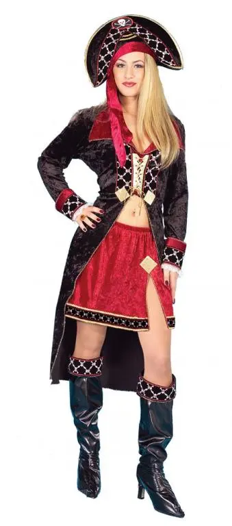 Costume includes: Hat with head scarf, jacket, skirt and boot tops