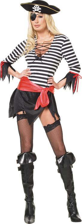 Explore In An Evening Filled With Hot And Sexy Pirates!Costume includes: Lace up front gartered dress, eye patch, and sash.Available Sizes: