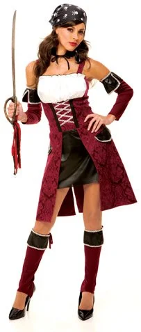 Includes dress, arm covers, boot covers, collar, and head scarf. Does not include shoes or sword. Available in adult sizes Small, Medium, and Large.